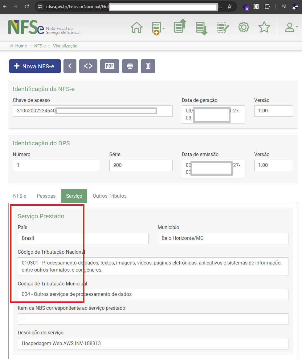 Veja que os mesmo valores foram aplicados no formulário, os mesmo que estão em uma NFSe emitida no Portal Nacional. É muito mais fácil fazer assim do que procurar essas informações no portal da prefeitura.