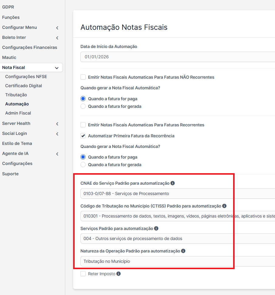- Regime de Apuração: aqui será NFS-e Nacional.