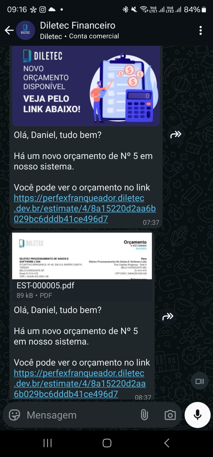 estimate_sent Envio de notificação de Orçamento