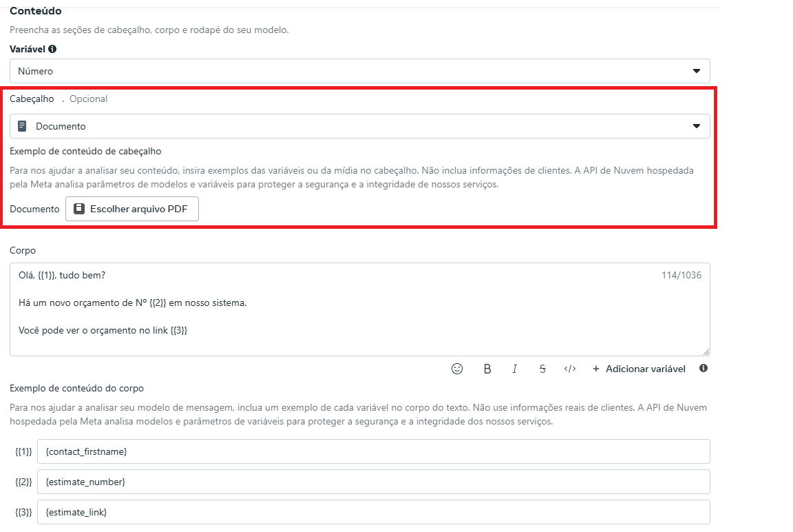 O Header aceita uma Imagem personaliza ou um PDF, dependendo do tipo de Hook.