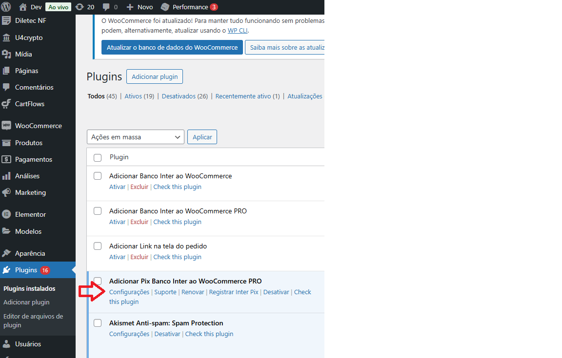 Primeiro será precisa instalar o Plugin e clicar em Configurações, abaixo do nome do Plugin.