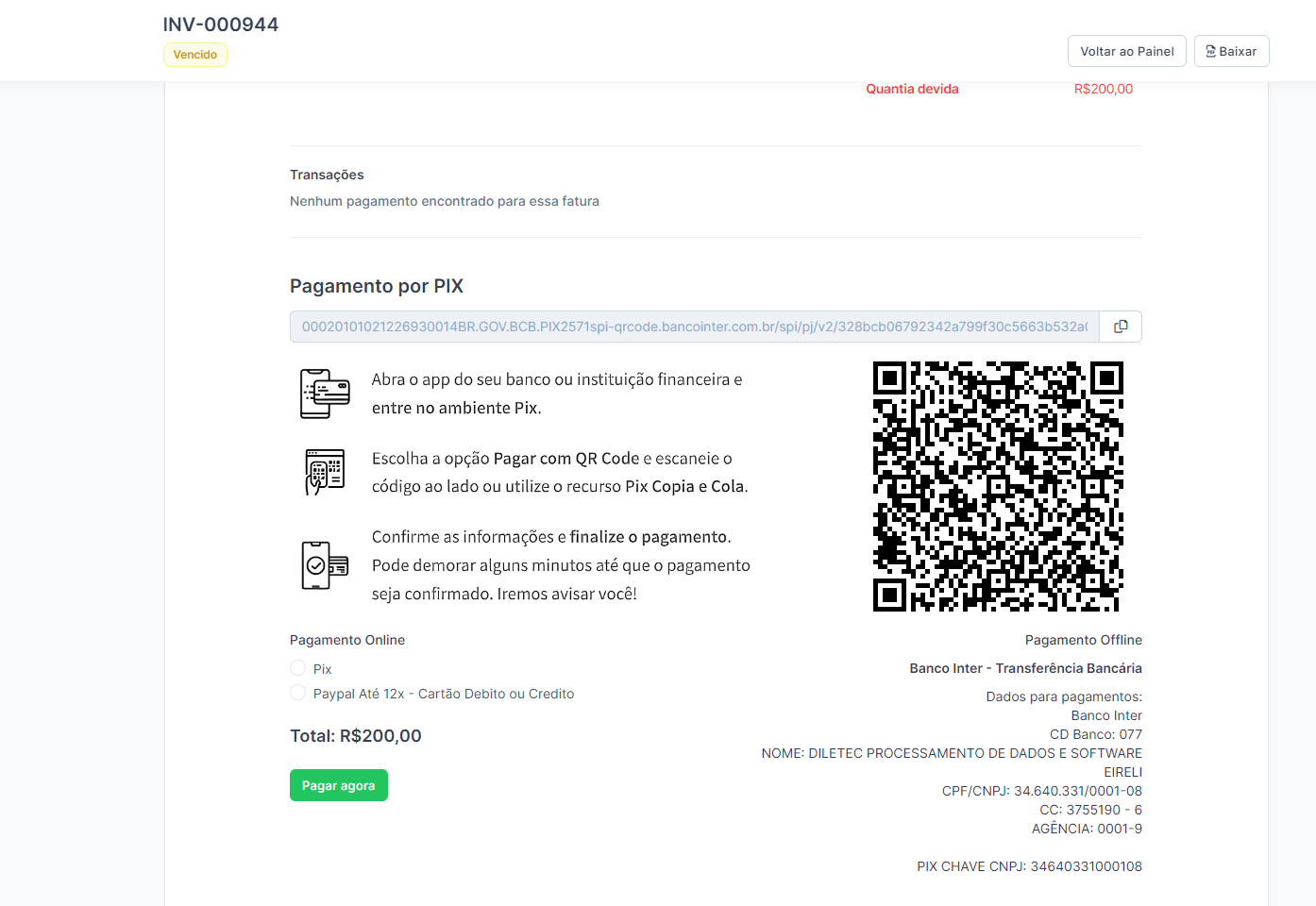 Você está prestes a descobrir uma maneira eficaz de otimizar suas transações comerciais online. Nosso exclusivo plugin de gateway de pagamento, desenvolvido pela renomada equipe da Diletec, oferece uma integração perfeita entre o seu CRM Perfex e o Banco Inter, abrindo as portas para uma nova era de economia e eficiência.