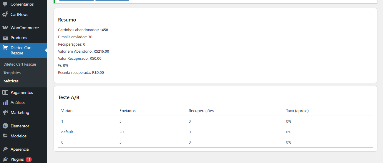 Diletec Cart Rescue: plugin de recuperação de carrinhos com testes A/B e cupons dinâmicos