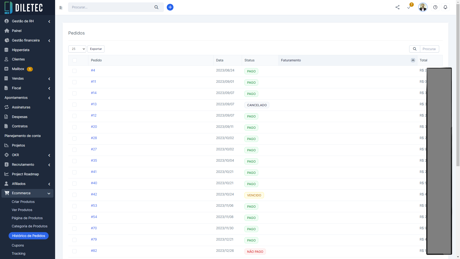 Histórico de Pedidos