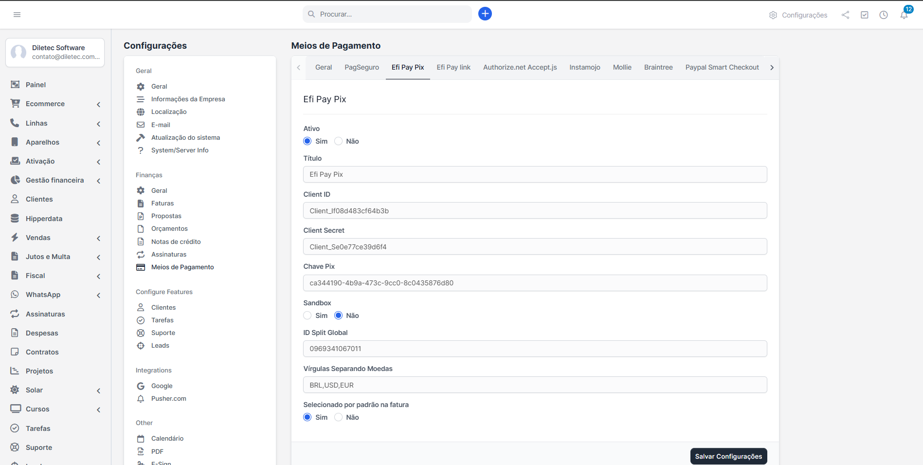 Módulo EFÍ Pay para Perfex CRM Split de Pagamento (Mult)