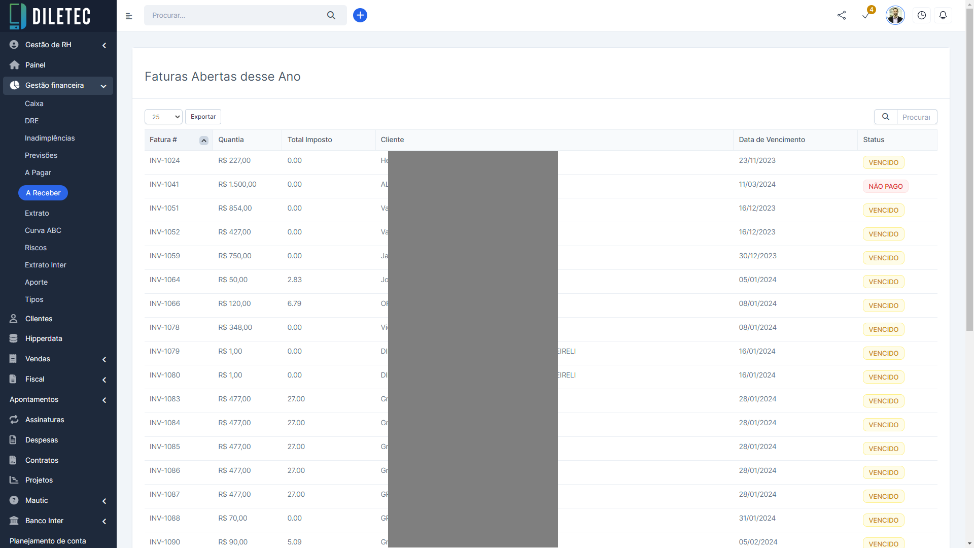 Faturas Abertas desse Ano (Contas a Recebe)